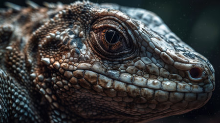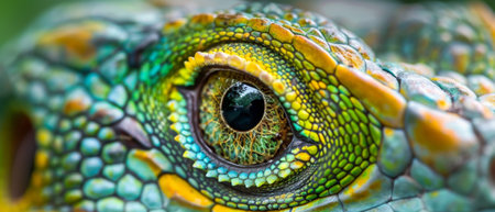 Close up of a reptile s eye, showcasing detailed textures and vibrant colors, perfect for wildlife and nature enthusiasts