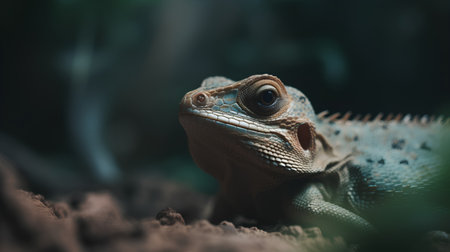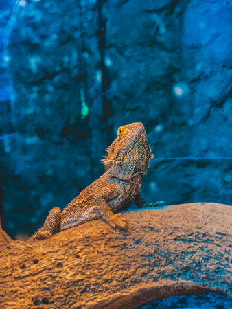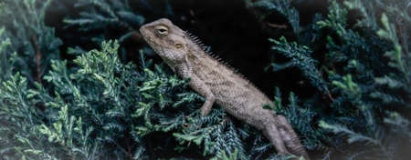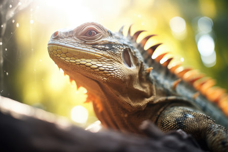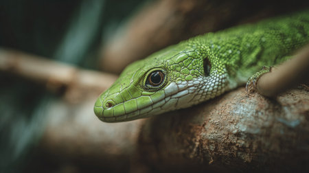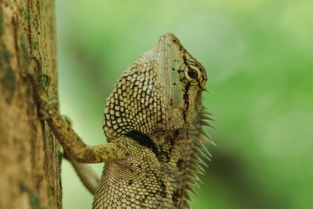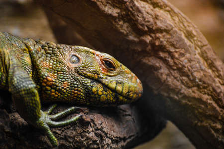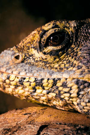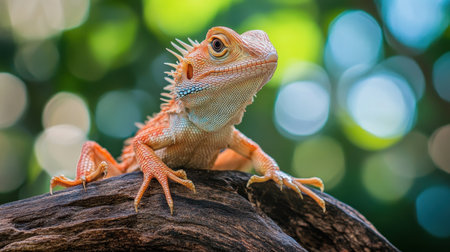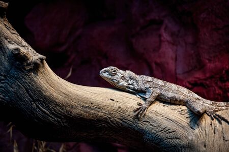 beautiful portrait of a reptile lizard sitting on a tree branch