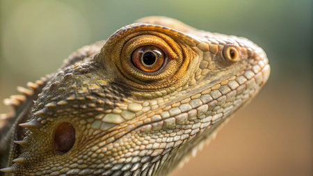 Close up portrait of a bearded dragon in the nature, vintage style