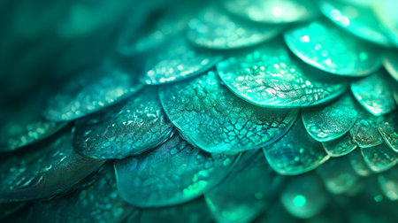 Abstract art of dragon skin in seamless iridescent fantasy scales pattern design. Closeup intricate hyper realistic beautiful animal skin. Finest generative AI.
