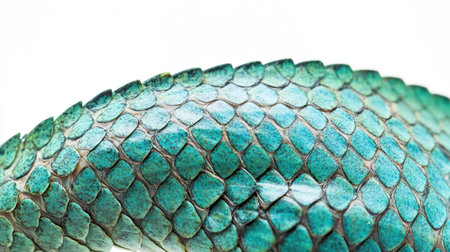 photo of lizard skin texture in bright turquoise and dark green scales, smooth and vibrant, space for text on the lower right, shot from above, isolated on white background, photography --chaos 10 --ar 16:9 --style raw --v 6.1 Job ID: 3330f0c6-5e31-4bf1-bd5f-50d07c10fe4e