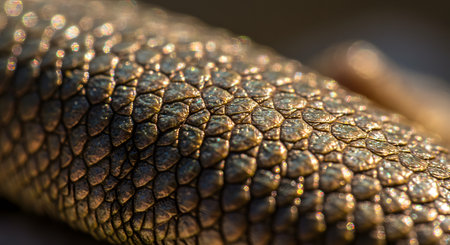 Golden Reptile Scales Macro with Shimmering Bokeh Highlights