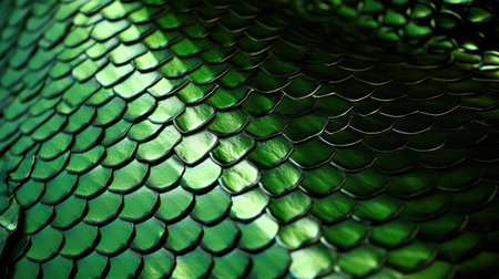 Macro shot of scaly snake skin, smooth and reflective with subtle shimmer, highlighting the reptilian texture and pattern.