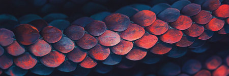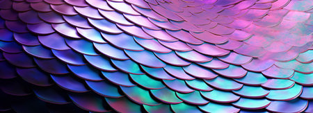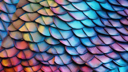 Stunning closeup macrophotography of vibrant iridescent scales with intricate patterns and shimmering textures in natural rainbow colors. Showcasing the beautiful. Bright