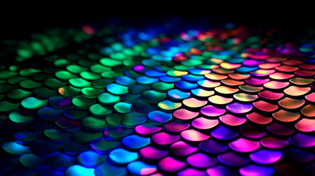 Iridescent scales texture with vibrant colors. Shiny metallic scale with colorful multicolored vibrant color or rainbow gradient colors. Abstract background and modern art concept. Fashion. AIG35.