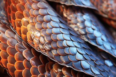 Explore the stunning details of vibrant iridescent scales in this macro photograph, showcasing rich colors and intricate textures of nature.