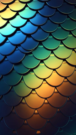 Intricate digital texture rendering with shimmering iridescent effects and layered depth, capturing a primal exotic vibe through precise light refraction simulation. Ideal for fantasy gaming environments, fashion textile prints, album artwork, or branding elements aimed at designers and digital artists. Seamless repeatability and high-detail execution support scalabl... AI-generated illustration.