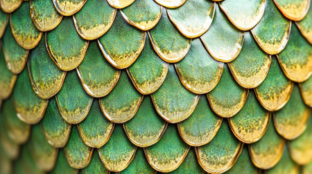This close-up reveals the stunning texture of green scales layered intricately. Each scale reflects light, showcasing nature's design in vivid detail. A glimpse into the beauty of wildlife.