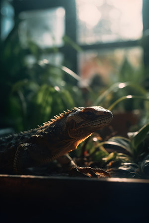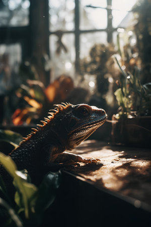 iguana under a bright sunbeam