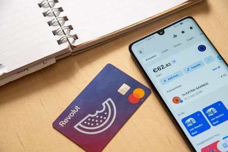 Woman use Revolut app. Mobile phone banking and investment concept photo