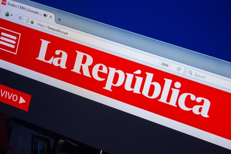 Ryazan, Russia - July 24, 2018: Homepage of LaRepublica website on the display of PC. Url - LaRepublica.pe
