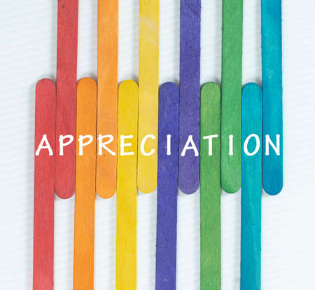 Business concept. The text Appreciation on colour sticks arranged side by side on white background