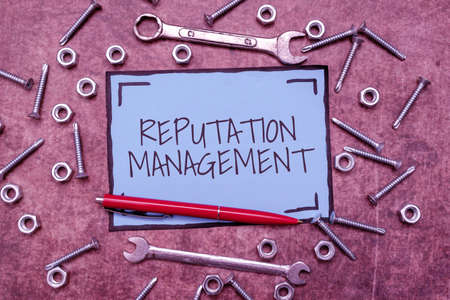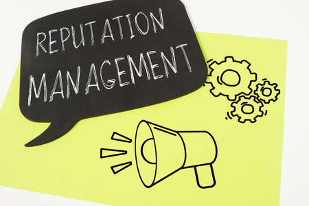 Top view of wooden tag written with REPUTATION MANAGEMENT