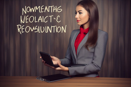 Unveiling New Regulations: A Woman in Formal Work Attire Guides the Way, Utilizing Smart Devices for Presentation + Control