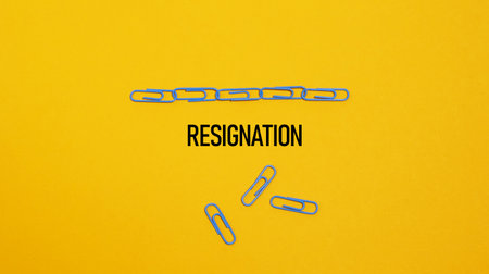 Resignation and Freedom from work - broken chain of paper clips. Quitting job