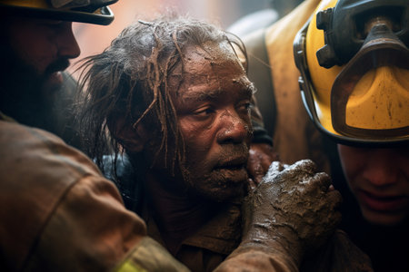 Rescue team evacuating disaster victim