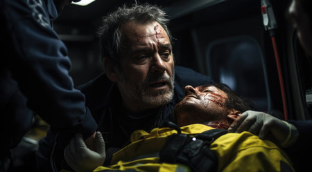 Ambulance paramedics saving patients life professional doctors helping people medics transportation to hospital danger health risk healthcare system injured patient urgent help medical insurance