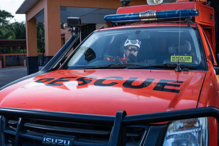 A dashing rescue team car (Basarnas) in front of the office, using the strobist concept. : Yogayakarta, Indonesia - 13 May 2022