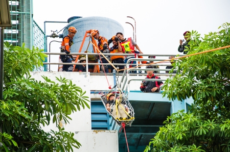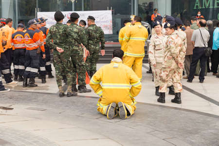 Chiang Mai, Thailand - March 25, 2016: Paramedic in mock disaster drill at Maya shopping center in Chiang Mai, Thailand on March 25, 2016.