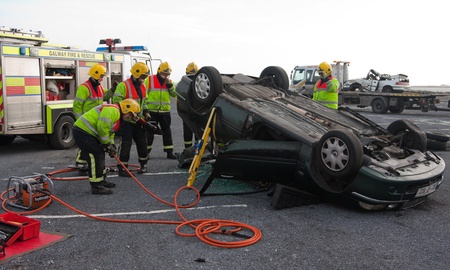 GALWAY-MARCH 9: Galway Fire and Rescue emergency Units at car crash training on March 9, 2011 in Galway, Ireland.