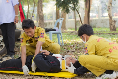 PHRAE,THAILAND - DECEMBER 20 : Unidentified men are first aid training from staff the hospital on December 20, 2012 at local parks, Muang, Phrae, Thailand.