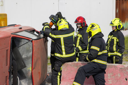 Czech Republic, Ostrava Exercises of rescue operation in a car accident.