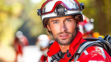 Heartwarming rescuers portrait, honoring bravery and compassion of those who dedicate their lives to saving others, capturing courage and selflessness of rescue workers in powerful visual narrative