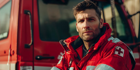 heroic paramedic in red uniform.