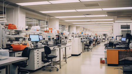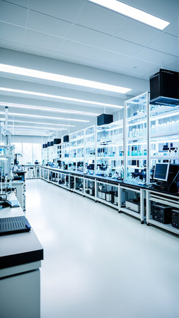 Modern laboratory interior with advanced scientific equipment and technology.