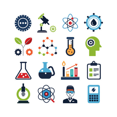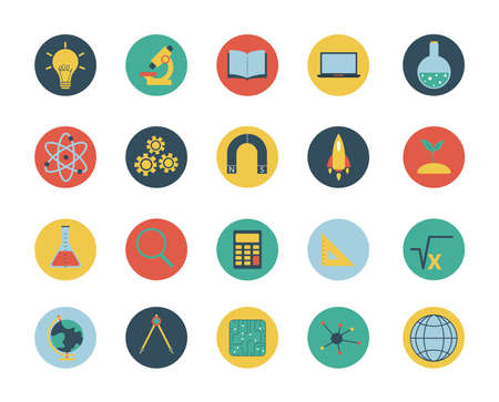 Flat style, colorful vector set of STEM education icons, for infographics, websites, mobile and print media. Educational icons set.