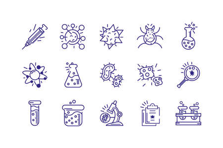 virus and bacterias icons set over white background, line detail style, vector illustration