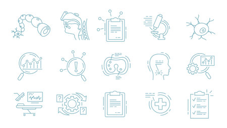 Set of illustrations in the concept of magnifying glasses and medical equipment in a line style.