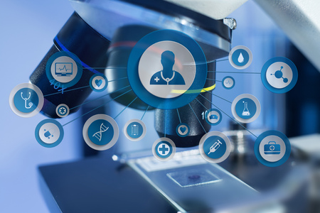 VIew of a Medecine and general healthcare icon displayed on a technology medical interace interface