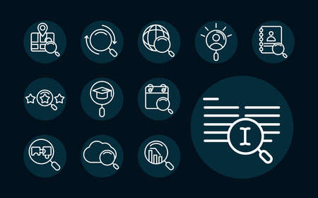 search icon, set icons block and line pictogram, email cloud computing calendar vector illustration