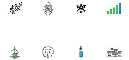 Collection of vibrant, flat-style icons featuring everyday objects and symbols.
