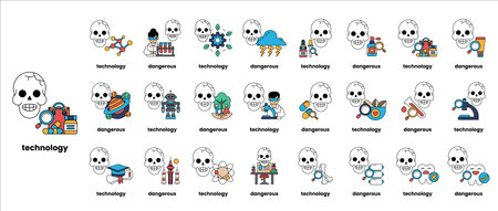 A collection of skulls and skeletons with the word technology written below them. The skulls and skeletons are arranged in a grid pattern