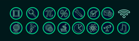 Explore a collection of vibrant, neon-glow icons representing education and technology. Each circular design features unique symbols, ideal for modern digital projects.