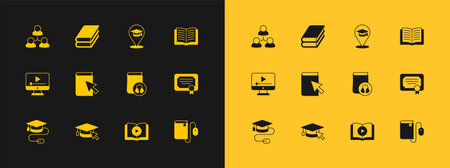 Set Open book Graduation cap with cursor Audio Online education class and Book icon. Vector.