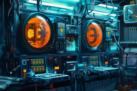 close-up of submarine control panel with buttons and switches, created with generative ai