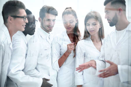 Medical students profession staff. multinational people - doctor, nurse and surgeon. A group of graduates of a medical university in a surgical room. Nursing School