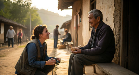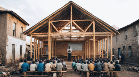 Concept photo of a missionary building a school or church in a povertystricken area, simultaneously providing education and hope through the Gospel