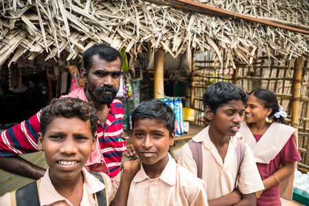 THANJAVUR, INDIA - FEBRUARY 13: An unidentified school children in uniform going home after classes at school. India, Tamil Nadu, near Thanjavur. February 13, 2013