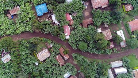 A view from the top of a traditional African village. Aerial view of a village in Africa.
