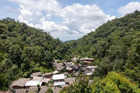 Scenery view of Ban Pangkhon village on the mountains (1,250 – 1,500 meters above sea level) in Chiang Rai province of Thailand. This village they're producing some of specialty co
