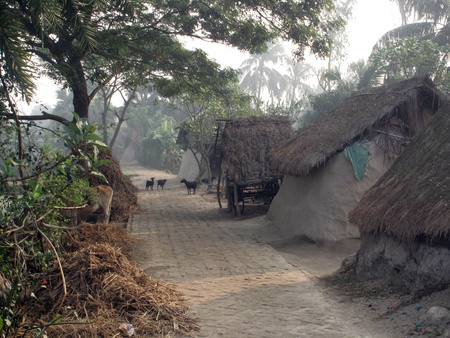 Deserted Indian Village: An empty rural village in India, with traditional mud huts, narrow lanes, and a quiet