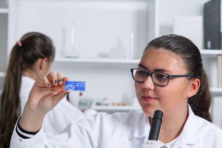 High School student. Student working at laboratory class.