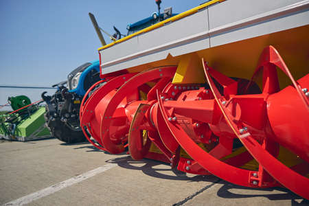 Modern agricultural machinery and equipment. Industrial details. Agricultural exhibition