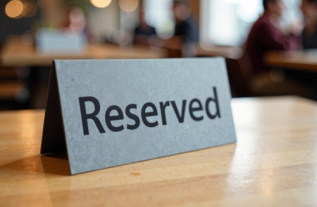 Reserved sign on wooden table with clean lines and soft lighting, symbolizing thoughtful planning and careful decision making. Ideal for projects focused on mindful choices and productivity