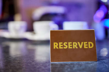 Plastic plaque with the inscription Reserved on the restaurant table