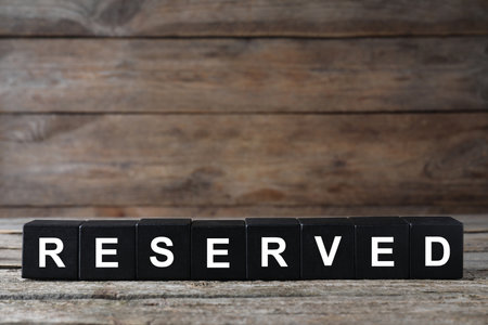 Reserved sign on wooden table with clean lines and soft lighting, symbolizing thoughtful planning and careful decision making. Ideal for projects focused on mindful choices and productivity